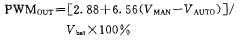 和自動方式一樣,器件可以調整gd端的輸出pwm信號的占空比,使電源電壓(vb。)變化時保持有效電機電壓為常數,手動方式的輸入輸出關系公式如下: