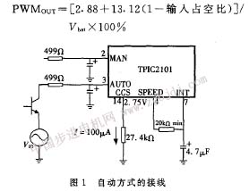 tpic2101具有兩種速度給定方式即自動方式和手動方式,可由用戶根據需要設置。在自動方式,速度給定信號是auto端的集電極開路pwm信