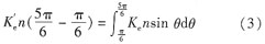 借助bldcm的計(jì)算方法,將blacm的反電勢(shì)波形在電流導(dǎo)通期間等效成面積相同的梯形,等效結(jié)果如圖l虛線所示,這樣就將blacm等效成bldcm了。設(shè)等效后的電勢(shì)系數(shù)為ke,電機(jī)轉(zhuǎn)速為n,則有: