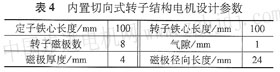 減小電機(jī)的軸向尺寸,本文采用內(nèi)置切向式轉(zhuǎn)子結(jié)構(gòu),重新進(jìn)行了設(shè)計(jì)。定子繞組參數(shù)基本不變,其他相關(guān)參數(shù)如表4所示。