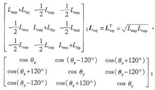 每個繞組的磁鏈是它本身的自感磁鏈和其它繞組對它的互感磁鏈之和,因此,式(2)中的磁鏈矩陣可表示為: