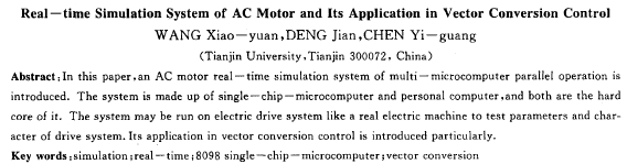 摘 要:介紹了一種多微機(jī)并行處理交流電動(dòng)機(jī)實(shí)時(shí)仿真系統(tǒng)。它以單片機(jī)和pc機(jī)作為核心對(duì)信號(hào)進(jìn)行實(shí)時(shí)處理,能夠模擬l臺(tái)真實(shí)電動(dòng)機(jī)運(yùn)行在電氣傳動(dòng)系統(tǒng)中以測(cè)試系統(tǒng)的參數(shù)和特性。文中重點(diǎn)介紹了它在矢量變換控制中的應(yīng)用。