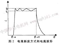 電流斬波控制即保持電機的開通角θ1、關斷角θ2不變,通過主開關的導通與關斷,將相電流限制在給定的上、下限之間,并以此來控制電機的轉矩。典型的電流斬波方式的電流波形如圖2所示。