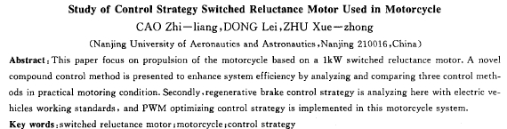 關鍵詞:開關磁阻電機;電動摩托車;控制模式