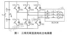 無刷直流電機控制系統(tǒng)一般采用三相電壓型逆變器,電機采用兩兩120。導通控制方式,其主電路如圖1所示。