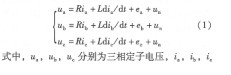 假設電機三相對稱,忽略凸極效應,則三相電壓方程可以表示為[7]: