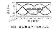 圖1為一臺三相12/14極m-fspm電機的截面圖。m-fspm電機與傳統(tǒng)結(jié)構(gòu)的12/10極fspm電機結(jié)構(gòu)較為相似,它由12個定子齒、12個容錯齒以及14個轉(zhuǎn)子齒組成。圖2為該電機在1 000 r/min時的三相空載反電勢波形。由圖可見,反電勢正弦度較好,三相反電勢互差120度。由于定子上容錯齒的引入,使得一相的磁力線不再像fspm電機那樣從相鄰相穿過,而是從容錯齒穿出,到達氣隙和轉(zhuǎn)子,實現(xiàn)了磁路的解耦。