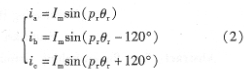假設(shè)運行于永磁交流無刷( blac)方式的mfspm電機,其三相電樞電流與每相反電動勢波形保持同相位,可以表示為: