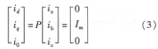 通過派克變換可得到轉(zhuǎn)子坐標(biāo)系下的直軸電流、交軸電流以及零軸電流滿足: