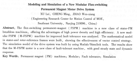 新型模塊化磁通切換永磁電機驅(qū)動系統(tǒng)建模與仿真研究