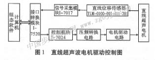 超聲波電機驅(qū)動系統(tǒng)由計算機、接口轉(zhuǎn)換模塊、電機控制模塊、壓頻轉(zhuǎn)換模塊、電機驅(qū)動模塊、參數(shù)檢測模塊和傳感器組成,直線超聲波電機驅(qū)動控制系統(tǒng)如圖1所示。