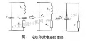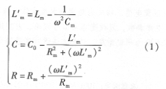 超聲波電機在諧振頻率附近,可以用圖1的等效電路來表示,其中cd是壓電陶瓷的夾持電容,電機質(zhì)量效應的等效電感,c是彈性效應的等效電容,r。是定子內(nèi)機械損耗的等效電阻。在不改變外特性的前提下,將等效電路簡化為rc并聯(lián)電路,各參數(shù)關(guān)系如下: