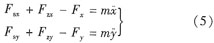 假定轉子外施徑向負荷分別為fzx、fzy轉子質量為m,理想狀態(tài)下懸浮系統(tǒng)控制模型為: