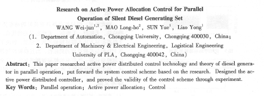 靜音柴油發(fā)電機(jī)組并列運(yùn)行有功功率分配控制研究