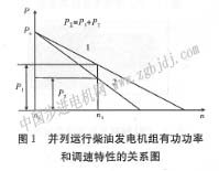 如圖1所示,設(shè)并列運(yùn)行機(jī)組調(diào)速特性為p=f(n),其中,p為柴油發(fā)電機(jī)組的功率;n為柴油機(jī)轉(zhuǎn)速。因此,整個(gè)電站的調(diào)速特性:∑p=f1(n)+f2(n)+…,式中∑只是整個(gè)電站的總負(fù)載功率。當(dāng)ep確定了,整個(gè)電站的頻率和各機(jī)組的功率就確定了。