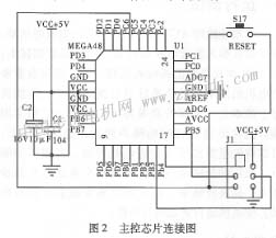 本設(shè)計(jì)選用avr單片機(jī)mega 48作為主控芯片。它集成度高,內(nèi)含8 mhz的rc振蕩電路,上電自動復(fù)位。