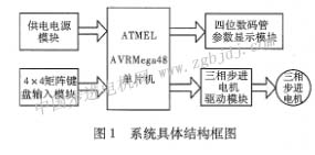 基于mega48單片機(jī)的三相步進(jìn)電機(jī)運(yùn)動控制系統(tǒng)功能要求是:①起動/停止,加速/減速,正轉(zhuǎn)/反轉(zhuǎn);②通過鍵盤設(shè)置步進(jìn)電機(jī)的運(yùn)行步數(shù)和