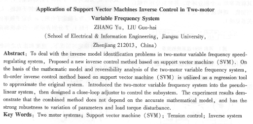 關(guān)鍵詞:兩電機(jī)系統(tǒng);支持向量機(jī);張力控制;逆系統(tǒng)