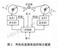 圖2為兩電機(jī)變頻系統(tǒng)的張力與轉(zhuǎn)速控制示意圖。