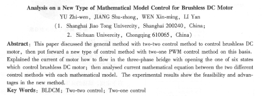 直流無刷電機的新型控制及其數(shù)學(xué)模型分析