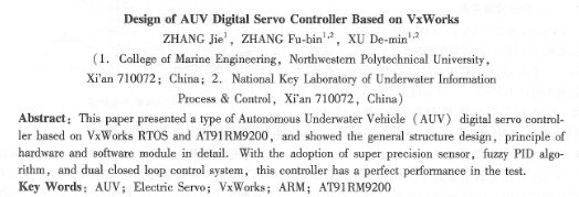關(guān)鍵詞:自主水下航行器;電動(dòng)舵機(jī);vxworks;arm; at91rm9200