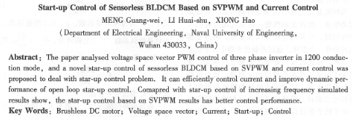 關鍵詞:無刷直流電機;電壓空間矢量;電流;起動;控制