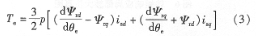 一般來說,若忽略d-q軸之間的互感耦合無刷直流電機(jī)的電磁轉(zhuǎn)矩te在同步旋轉(zhuǎn)的d-q坐標(biāo)系中可表示為: