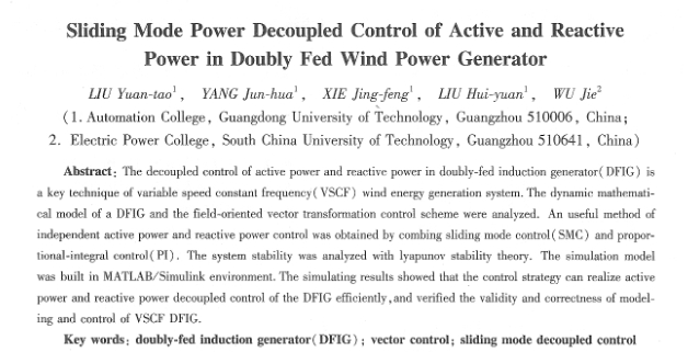 關(guān)鍵詞:雙饋異步發(fā)電機(jī);矢量控制;滑模解耦控制