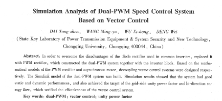 關(guān)鍵詞:雙脈寬調(diào)制i矢量控制;單位功率因數(shù)