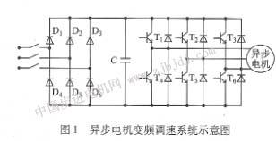 速異步電機斷條故障診斷方法本文討論的變頻調(diào)速系統(tǒng)中變頻器為交直交電壓型。交一直一交變頻器主要由整流部分(dl-d6)、整流電容c和逆變部分(t1-t6)組成,如圖l所示。