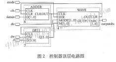 圖2中,clk為時(shí)鐘信號,此信號由fpga內(nèi)部時(shí)鐘信號分頻獲得;datain為頻率控制字,改變datain的大小能夠改變步進(jìn)電機(jī)的速率;dir為步進(jìn)電機(jī)轉(zhuǎn)向控制信號;mode為步進(jìn)電機(jī)運(yùn)行模式選擇信號,這里步進(jìn)電機(jī)可作三相單三拍、三相雙三拍、三相六拍轉(zhuǎn)動(dòng);dw為定位起動(dòng)信號;d為定位的步數(shù);outputabe為三相波形輸出。