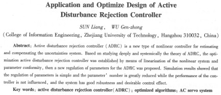關(guān)鍵詞:自抗擾控制器;優(yōu)化算法;交流伺服系統(tǒng)