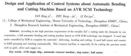 摘要:根據某企業(yè)對太陽能電池金屬連接片精確剪切要求,設計了一種用avr單片機為控制核心的自動折彎切線機。該設備用單片d控制步進電機實現送料、剪切等功能,用霍爾傳感器和計數器實現計數,適用于較貴重的金屬導體(例如金、銀、銅等)的切斷。