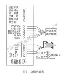 電機驅動器分別為sh2046d和sh2034d。這兩款驅動器采用了新型、高速單片機技術,內部采用光電隔離技術,運行穩(wěn)定可靠,步距細分數****可達256,能滿足本系統精度設計要求;同時具有噪聲低、效率高、電壓范圍寬、設置靈活等優(yōu)點。輸入電源接口:采用一組交流供電,ac接ac 20—60 v,3a或接一組直流供電dc 24~ 70 v,3a。功能示意圖如圖3所示。