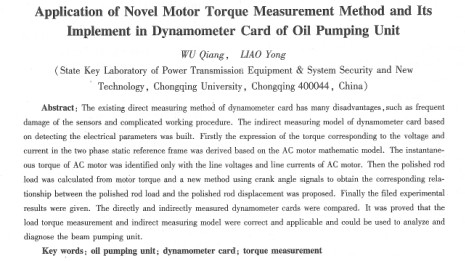 一種新型轉(zhuǎn)矩檢測技術(shù)及其在抽油機(jī)示功圖中的應(yīng)用