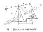 游梁式抽油機(jī)主要由游梁一連桿一曲柄機(jī)構(gòu)、減速箱、動力設(shè)備和輔助裝置等四部分組成。抽油機(jī)多以電動機(jī)為原動力,通過皮帶和減速箱帶動曲櫥作低速旋轉(zhuǎn)。曲柄通過連桿經(jīng)橫粱帶動游梁作上下擺動,掛在驢頭上的懸繩器帶動抽油桿柱作上下往復(fù)運動。