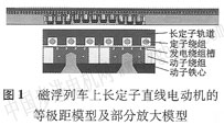 常導吸浮型高速磁浮列車(采用常規(guī)導體線圈,運用異性磁極相吸原理),以長定子直線同步電動機作為主要驅(qū)動部件,設(shè)計時速可達500km.在如此高速的環(huán)境中,研究列車上直線電機中電磁場變化及懸浮力波動和推力波動情況等現(xiàn)象,對于控制列車的高速穩(wěn)態(tài)運行有重要意義。