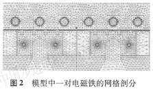 maxwell 2d采用****的自適應(yīng)網(wǎng)格剖分技術(shù),可以使用戶方便快捷地對模型進行網(wǎng)格剖分,并可以根據(jù)剖分結(jié)果來重新設(shè)定網(wǎng)格剖分數(shù)據(jù),網(wǎng)格剖分的三角形越小,計算結(jié)果越精確,如圖2所示。