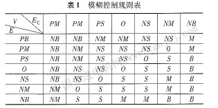 由于輸入偏差e與誤差變化e,的論域均為:[6,一5,一4,3,2,l,o,1,2,3,4,5,6],故在此論域上定義模糊集為7個:{nb,nm,ns,z,s,m,b}。