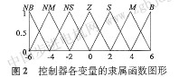 隸屬函數(shù)均采用三角型隸屬甬?dāng)?shù)。其控制器各變量的隸屬函數(shù)圖形如圖2所示。