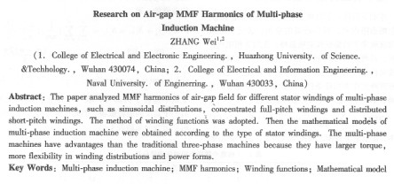 關(guān)鍵詞:多相感應(yīng)電動機;氣隙磁勢諧波;繞組函數(shù);數(shù)學(xué)模型