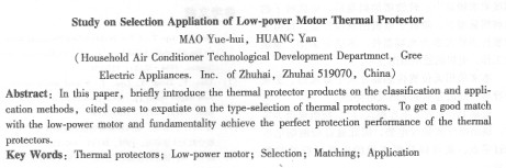關(guān)鍵詞:熱保護器;小功率電機;選型;匹配;應用
