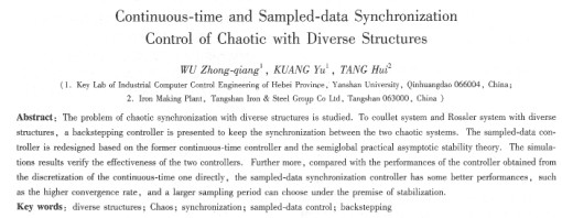 關(guān)鍵詞:異結(jié)構(gòu);混沌;同步;采樣控制;反步法