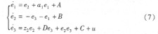 為了便于采用backstepp/ng方法進(jìn)行設(shè)計(jì)(需要嚴(yán)格下三角結(jié)構(gòu)),首先交換上式中e1和e2的下標(biāo),再互換第一個(gè)方程與第二個(gè)方程的位置,令: