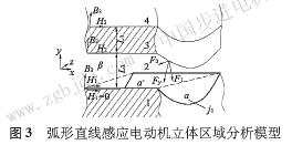 關鍵詞:弧形直線感應電動機;區(qū)域模型;法向力;三維瞬態(tài)有限元模型