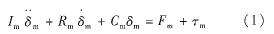 式中:δm為轉(zhuǎn)向角度;Im,Rm為前輪的瞬時(shí)轉(zhuǎn)動(dòng)慣量和阻尼系數(shù);Cm為靜摩擦力矩。