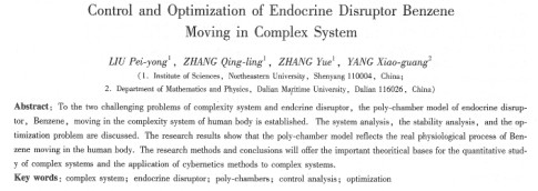 關(guān)鍵詞:復(fù)雜系統(tǒng);環(huán)境激素;多室模型;控制分析;優(yōu)化