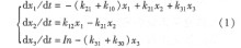 設(shè)x1,x2,x3為環(huán)境激素己烯雌酚的量,kij為環(huán)境激素在各室之間(從i室向j室)遷移的速率常數(shù)(i,j=l,2,3),h為攝人量。遷移過(guò)程用一級(jí)動(dòng)力學(xué)過(guò)程表示。根據(jù)概念模型中的關(guān)系,利用生態(tài)毒理學(xué)和數(shù)學(xué)璉模方法可以建立微分系統(tǒng)方程模型,對(duì)該系統(tǒng)描述如下: