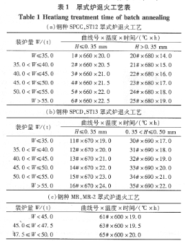 每一爐鋼卷的加熱時(shí)間根據(jù)退火工藝確定,而不是單純某項(xiàng)指標(biāo)的簡單解析函數(shù),見表1。