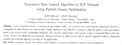 關(guān)鍵詞:擁塞控制;速率控制;效用函數(shù);非凸優(yōu)化;粒子群方法